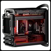 Designed for ITX Motherboards, the striking key component of the interior is the Dual Frame Design for easy access and quick installation. The inner chamber, equipped with enough space for high-end components, slides into the housing via a ball bearing runner design.