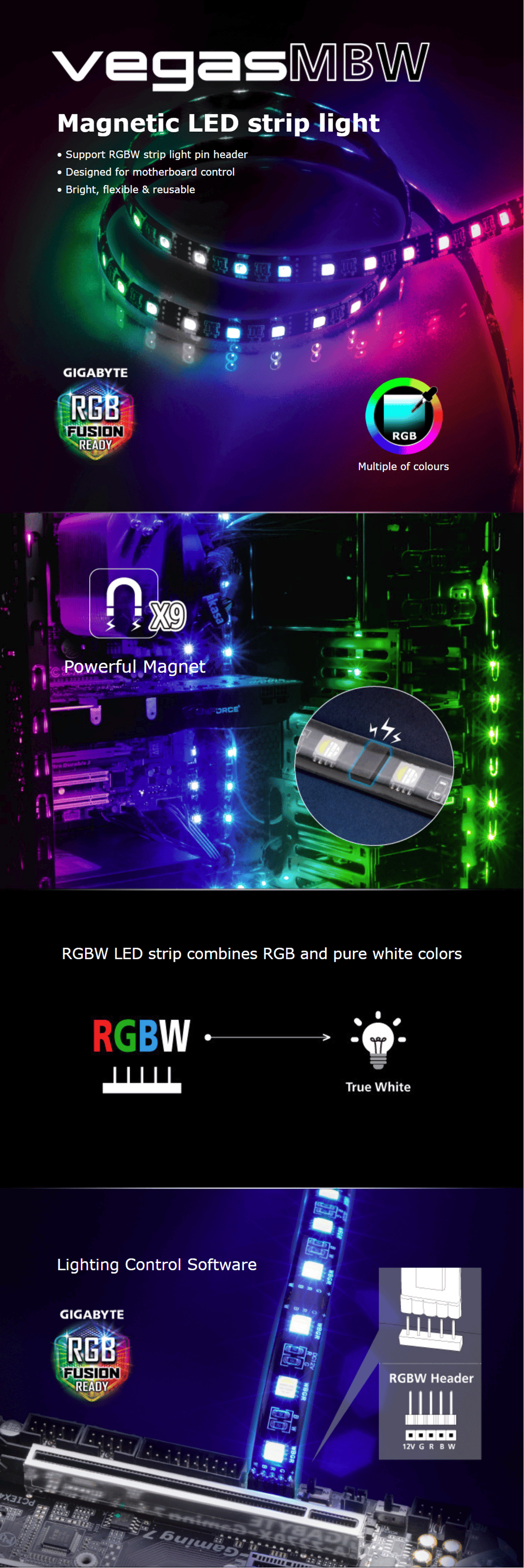 Akasa Vegas MBW Magnetisk LED-ljusslinga 50cm RGBW
