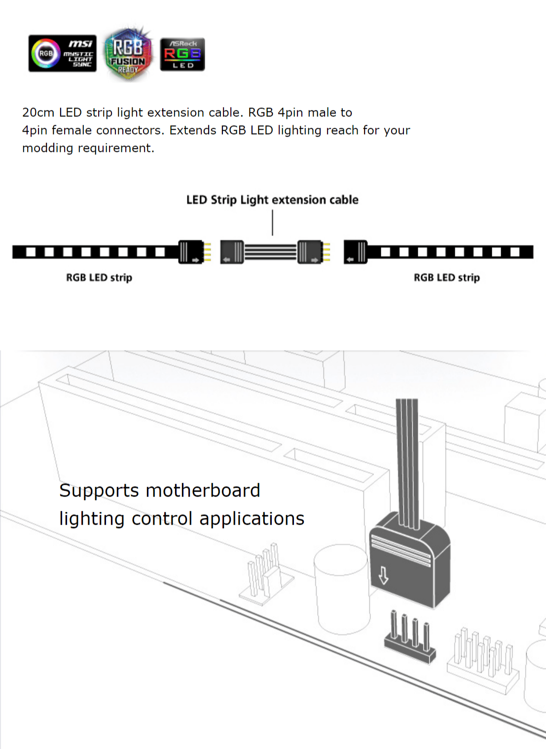 Akasa LED-ljusslinga förlängningskabel RGB 20cm 4pin