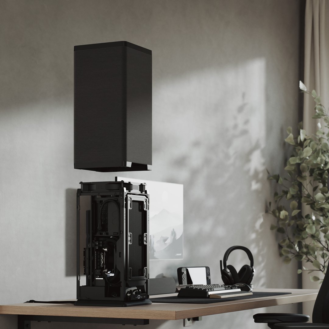 Pop out the back panel and simply slide off the fabric-covered enclosure for full access to your build.