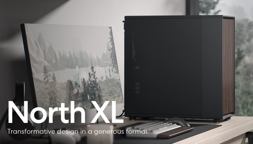 North XL offers a transformative take on the gaming PC case in a generous form factor. With fine-patterned mesh ventilation and an open front featuring FSC-certified walnut or oak panels, the design of North XL makes it a stylish addition to any living space while helping components stay cool. The design is complemented by sleek brass or steel details and an integrated tab for easy access to the top of the case. Inside, it boasts a spacious, flexible, and intuitive interior layout so you can make the most of your building aspirations and gaming experience.