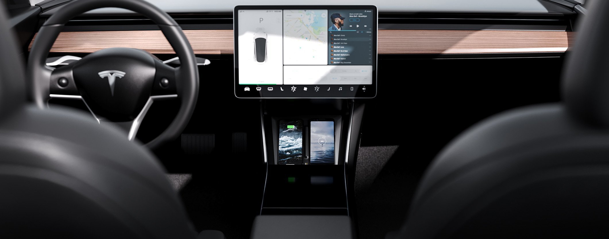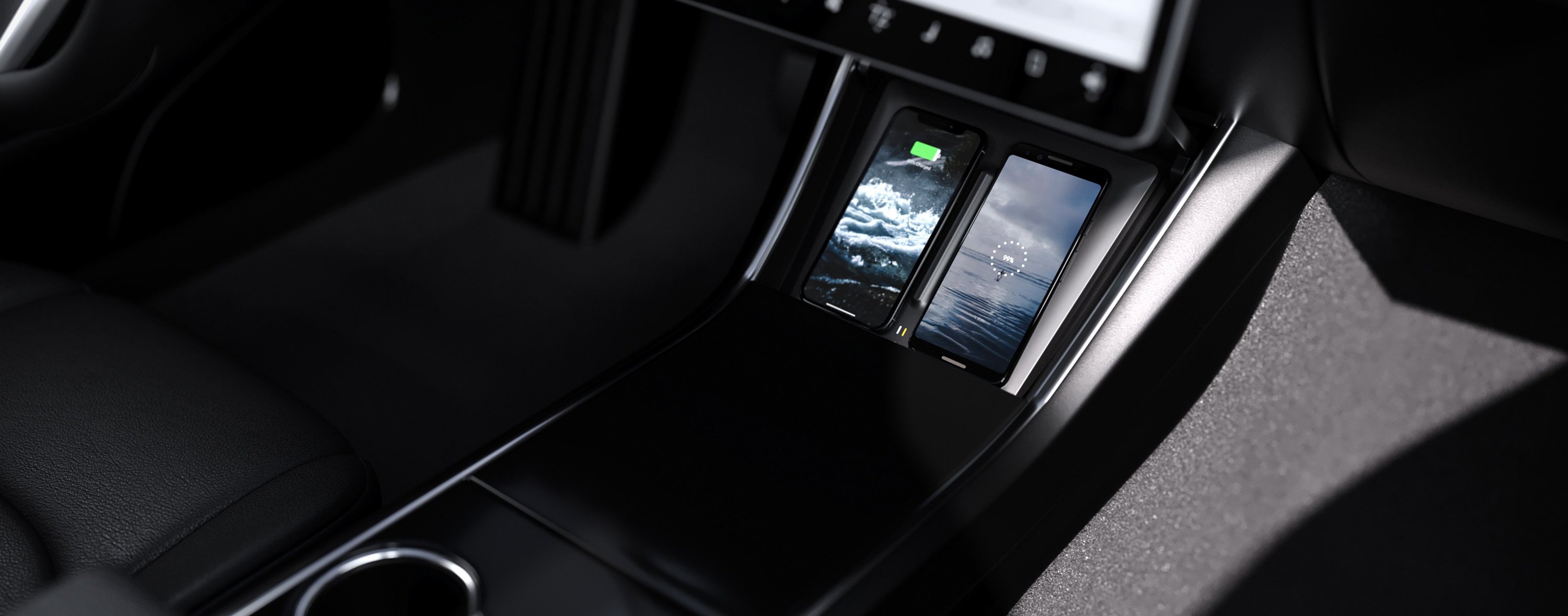 Den här tillverkade laddstationen är specialtillverkad för att passa perfekt i din Tesla Model 3s mittkonsol. Den matta och svarta ytan passar som handen i handsken tillsammans med Teslas premiumdesign. Tätt integrerad förblir enheten och dina telefoner på plats under skarpa svängar och snabba stopp.