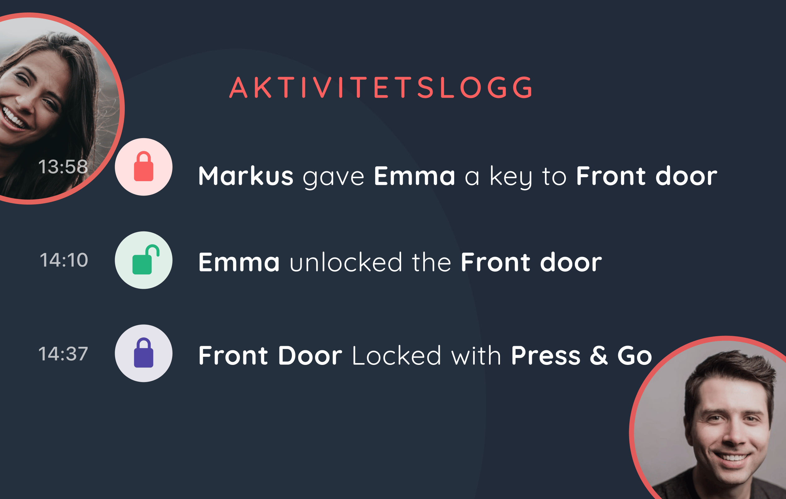 Nycklar kan ges till familjemedlemmar, gäster eller vänner, notiser i appen i realtid.