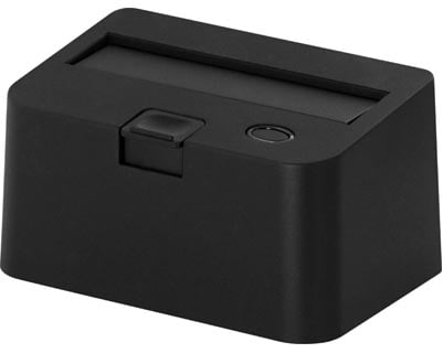Ingen programvara behövs. Med en knapptryckning får man ut hårddisken ur dockningen.