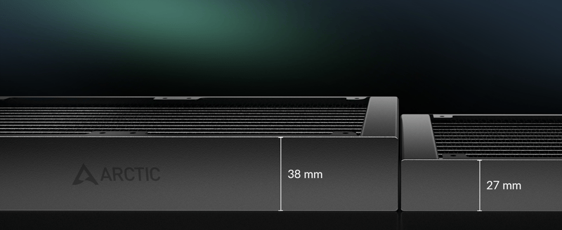 Den 38mm tjocka radiatorn på Arctic Liquid Freezer III Pro ger dig högre kylnings förmåga ställt mot den traditionella tjockleken på 27mm.
