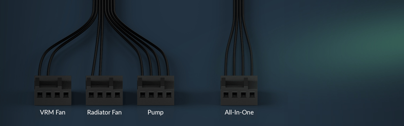 Med Arctic Liquid Freezer III kan du välja om du vill koppla Pump, VRM-fläkt och radiator-fläktar för sig eller om du vill använda "All in one" adaptern för att koppla alla delar av kylningen på en och samma PWM-kontakt.